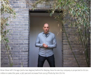 The piece explores how Sloan left his legal career behind to build a 10 million-dollar a year company he runs from a table in a café in China. Powered by “shameless self promotion” and with only one full time employee, the article also examines Sloan’s entrepreneurial journey which happens to include a run in with Chicago homicide detectives. Writer Mitch Moxley followed Sloan in China to incorporate into the article his tour of the factory that produces the Autoblow 2 and to Berlin to observe the awkward conclusion of Sloan’s Vaginal Beauty Contest.
