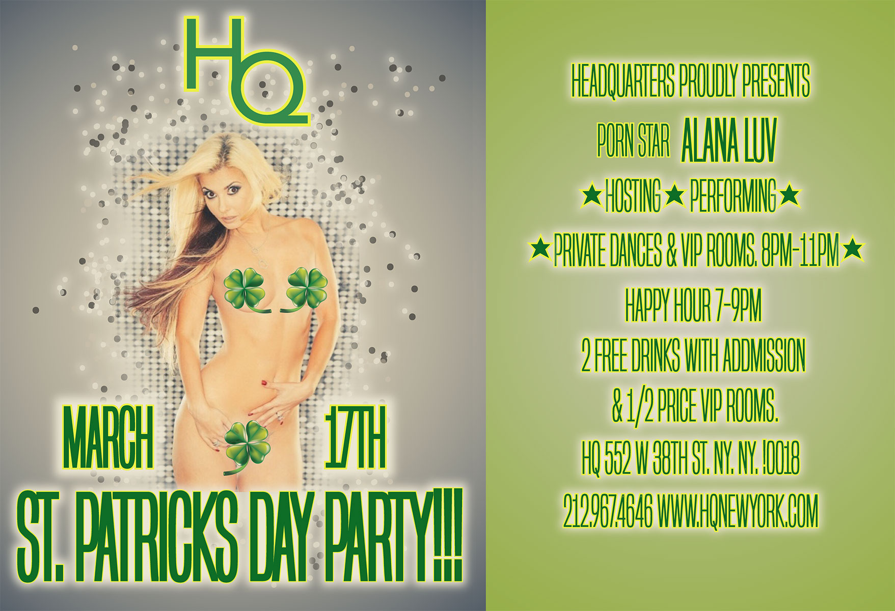 New York City adult star Alana Luv will be going green when she hosts and performs Headquarters Gentlemen’s Club St. Paddy’s Day party on Friday, March 17 from 8pm to 11pm and will be available for autographs, photographs, lap dances and private rooms.