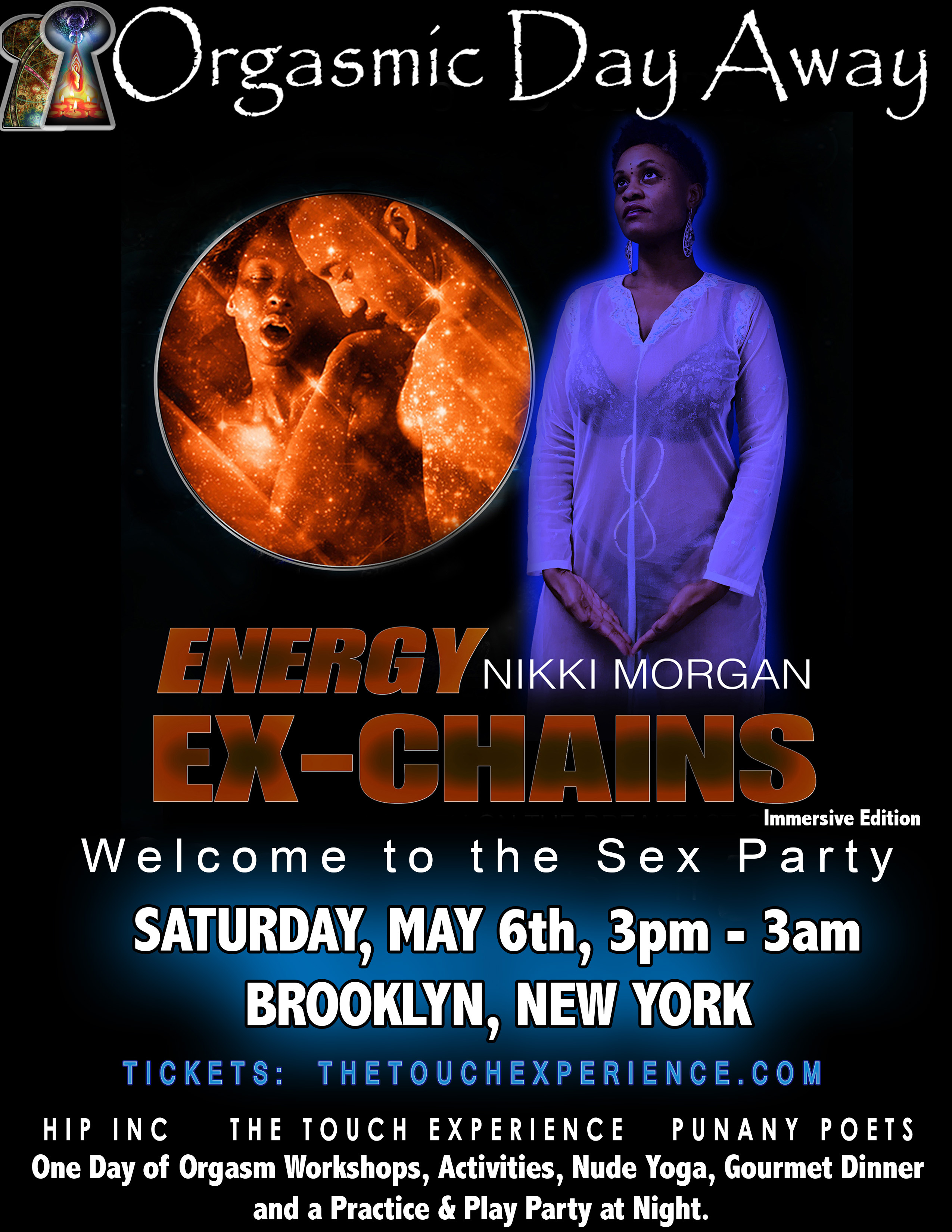 Clinical sexologist Nikki Morgan invites sex-positive men and women to “Orgasmic Day Away,” a scintillating, entire day devoted to sexual exploration, presented by Punany Poets Energy Ex-Chains, on Saturday, May 6 from 3pm to 3am.