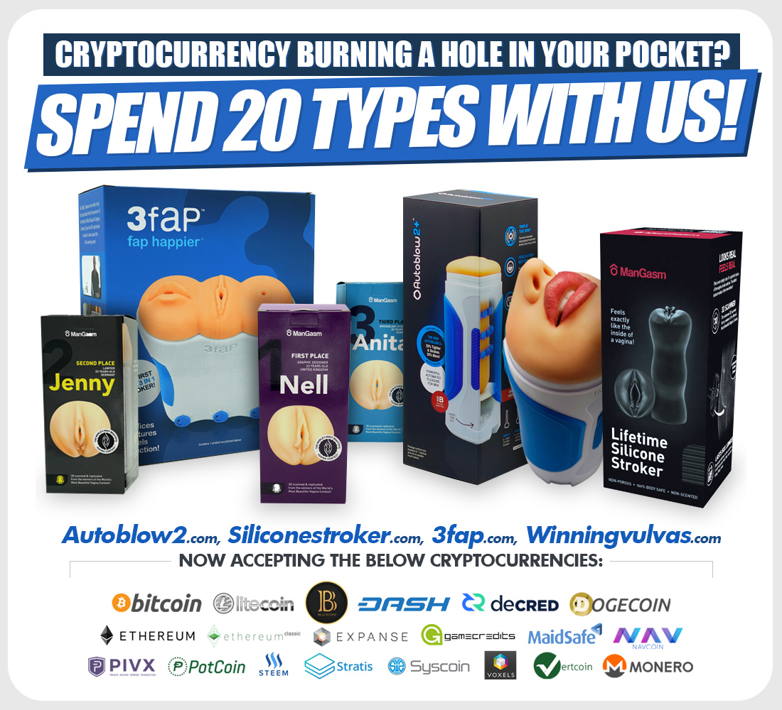 Sex toy inventor Brian Sloan has taken a step towards helping his most private customers keep their masturbation habits private by accepting 20 types of cryptocurrency across 6 ecommerce websites. People who enjoy masturbating can now use crypto currency to purchase: