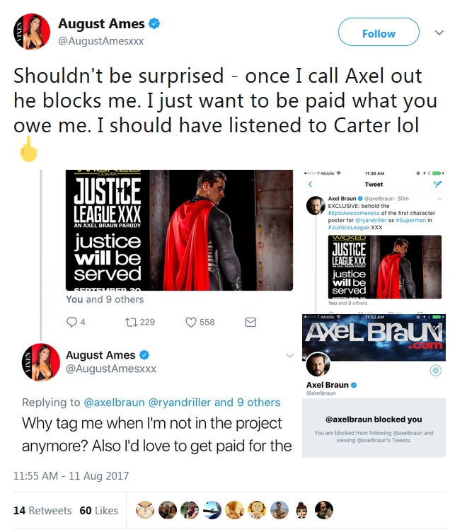 Adult Business NewsAugust Ames Calls Out Axel Braun For Not Paying Her.. Press Stuff9 years ago01 mins Its not like this accusation hasn’t been made before… Carter Cruise for one… But hey, new cars aren’t free.. Share this:Click to share on Facebook (Opens in new window)Click to share on Twitter (Opens in new window)Click to share on Tumblr (Opens in new window)MoreClick to email a link to a friend (Opens in new window)Click to print (Opens in new window)Click to share on Pocket (Opens in new window)Click to share on Reddit (Opens in new window)Click to share on LinkedIn (Opens in new window)Click to share on Pinterest (Opens in new window) Related Post navigation Previous: Lisey Sweet Returns to PervCity for her First DPNext: Scarlet Sade Returns, Featured In New Devil’s Film DVD Leave a Reply Cancel replyYour email address will not be published. Required fields are marked *Comment * Name * Email * Website Notify me of new posts by email.