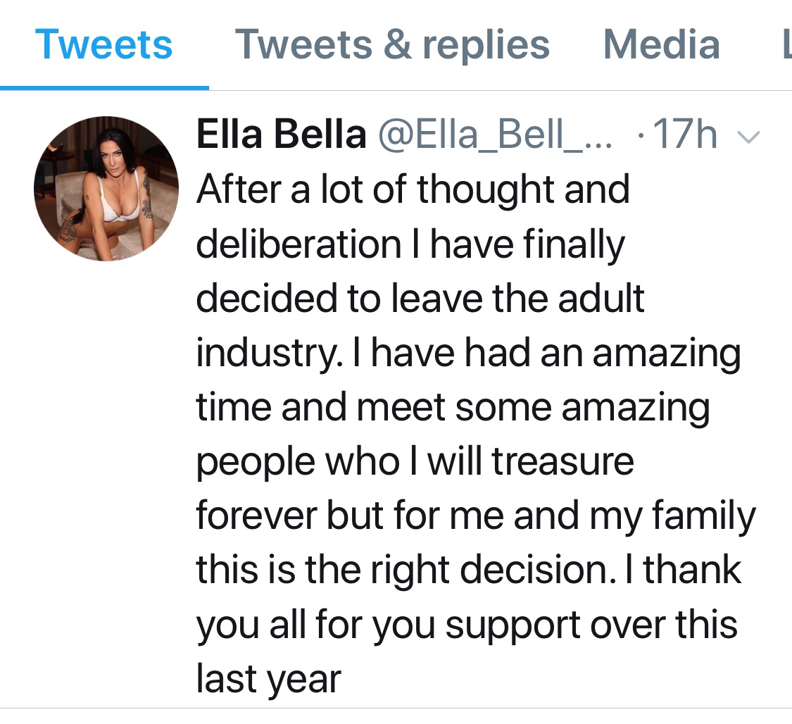 Adult BusinessAdult Business NewsEuro Porn Star Ella Bella Retires Dick Nixon8 years ago8 years ago01 mins Ella announced her retirement on twitter Share this:Click to share on Facebook (Opens in new window)Click to share on Twitter (Opens in new window)Click to share on Tumblr (Opens in new window)MoreClick to email a link to a friend (Opens in new window)Click to print (Opens in new window)Click to share on Pocket (Opens in new window)Click to share on Reddit (Opens in new window)Click to share on LinkedIn (Opens in new window)Click to share on Pinterest (Opens in new window) Related Post navigation Previous: VogoV Launches, Giving Porn Fans the Opportunity to Create Their Own Porn ContentNext: Industry Veteran Producers Fivestar and Sadie Lola Launch ‘Custom Filth’ Site Leave a Reply Cancel replyYour email address will not be published. Required fields are marked *Comment * Name * Email * Website Notify me of new posts by email.
