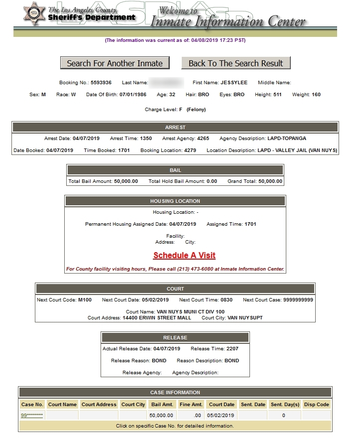 Bond was set at 50,000 and he was bailed out by another performer.